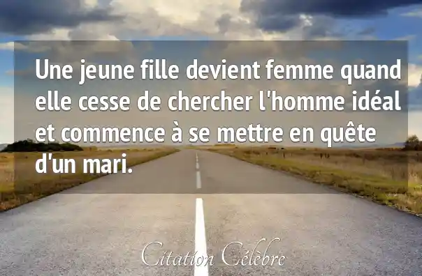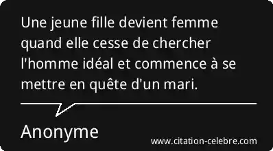 Une jeune fille devient femme quand elle cesse de chercher l'homme idéal et commence à se mettre en quête d'un mari.