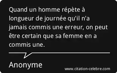 Quand un homme répète à longueur de journée qu'il n'a jamais commis une erreur, on peut être certain que sa femme en a commis une.