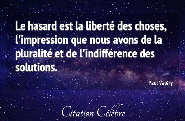 Le hasard est la liberté des choses, l'impression que nous avons de la pluralité et de l'indifférence des solutions.