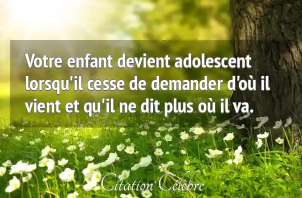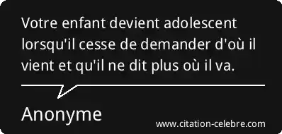 Votre enfant devient adolescent lorsqu'il cesse de demander d'où il vient et qu'il ne dit plus où il va.