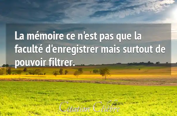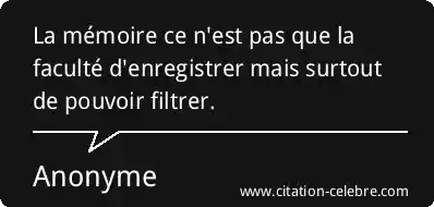 La mémoire ce n'est pas que la faculté d'enregistrer mais surtout de pouvoir filtrer.