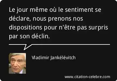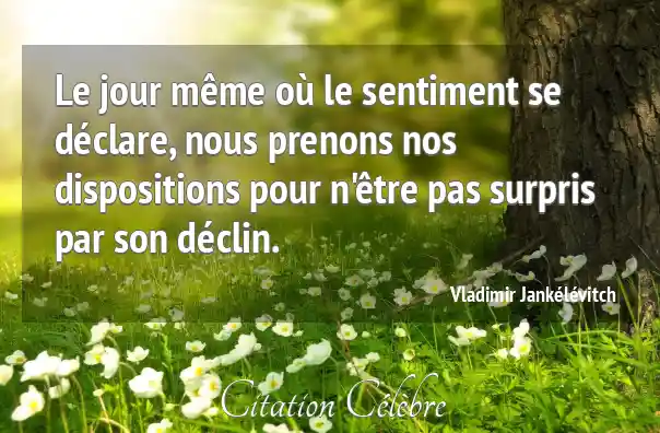 Le jour même où le sentiment se déclare, nous prenons nos dispositions pour n'être pas surpris par son déclin.