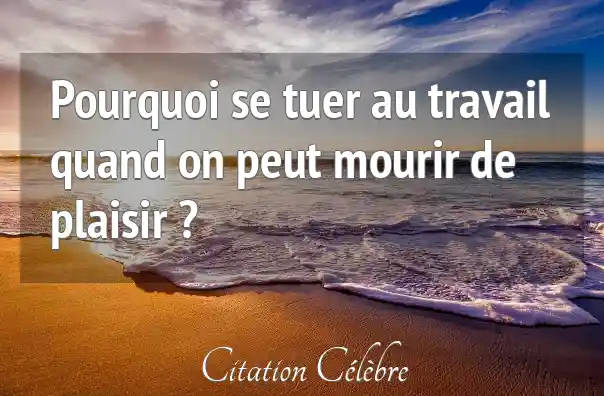 Pourquoi se tuer au travail quand on peut mourir de plaisir ?