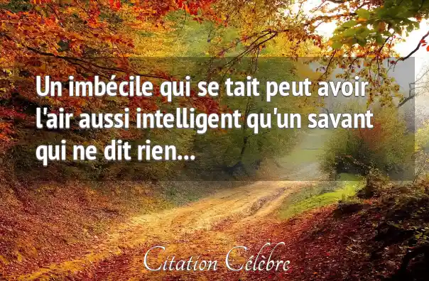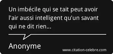 Un imbécile qui se tait peut avoir l'air aussi intelligent qu'un savant qui ne dit rien...