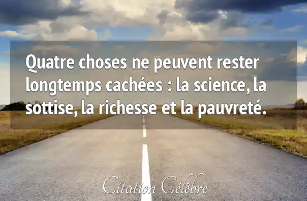 Quatre choses ne peuvent rester longtemps cachées : la science, la sottise, la richesse et la pauvreté.