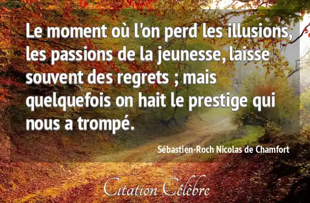 Le moment où l'on perd les illusions, les passions de la jeunesse, laisse souvent des regrets ; mais quelquefois on hait le prestige qui nous a trompé.