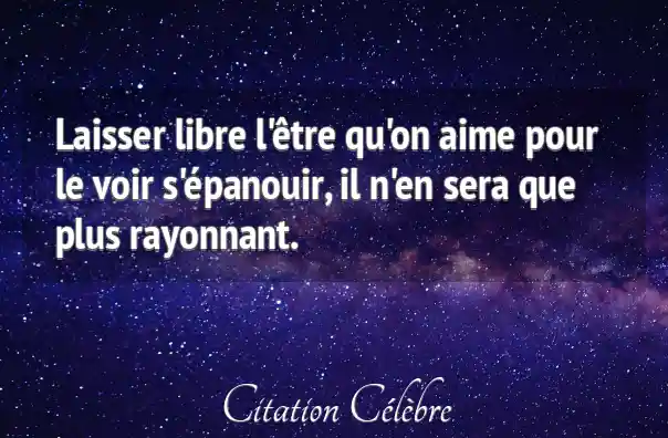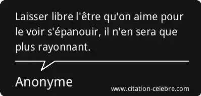 Laisser libre l'être qu'on aime pour le voir s'épanouir, il n'en sera que plus rayonnant.