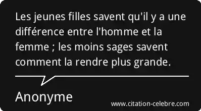 Les jeunes filles savent qu'il y a une différence entre l'homme et la femme ; les moins sages savent comment la rendre plus grande.