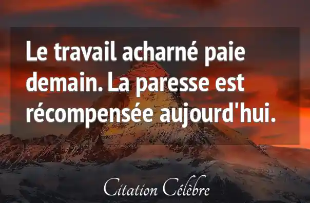 Le travail acharné paie demain. La paresse est récompensée aujourd'hui.