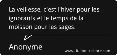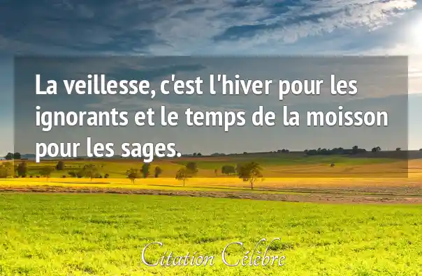 La veillesse, c'est l'hiver pour les ignorants et le temps de la moisson pour les sages.