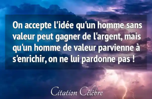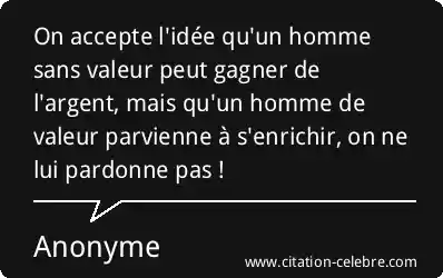 On accepte l'idée qu'un homme sans valeur peut gagner de l'argent, mais qu'un homme de valeur parvienne à s'enrichir, on ne lui pardonne pas !
