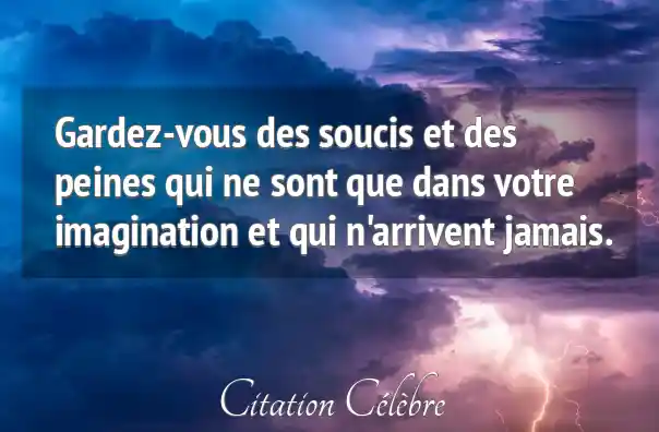 Gardez-vous des soucis et des peines qui ne sont que dans votre imagination et qui n'arrivent jamais.