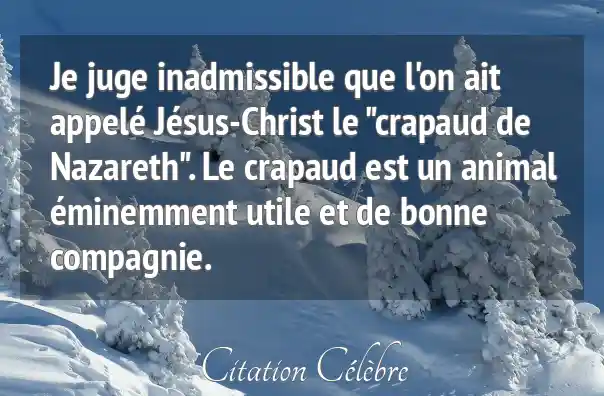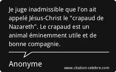 Je juge inadmissible que l'on ait appelé Jésus-Christ le "crapaud de Nazareth". Le crapaud est un animal éminemment utile et de bonne compagnie.