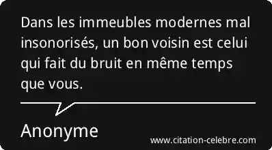 Dans les immeubles modernes mal insonorisés, un bon voisin est celui qui fait du bruit en même temps que vous.