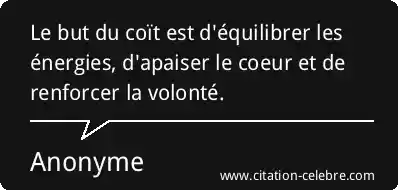 Le but du coït est d'équilibrer les énergies, d'apaiser le coeur et de renforcer la volonté.