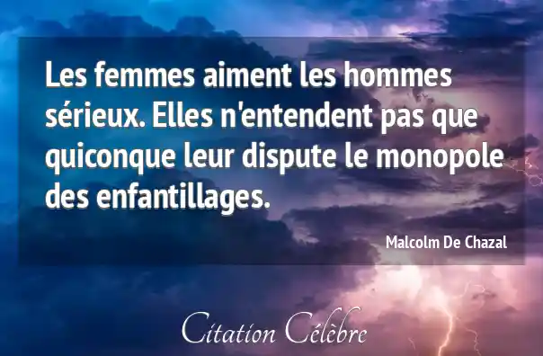 Les femmes aiment les hommes sérieux. Elles n'entendent pas que quiconque leur dispute le monopole des enfantillages.