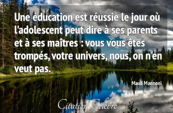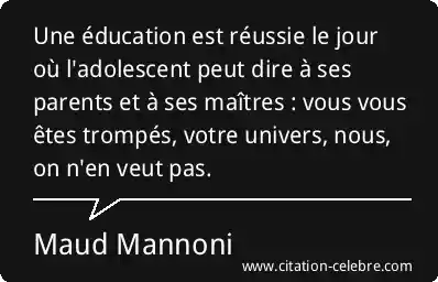 Une éducation est réussie le jour où l'adolescent peut dire à ses parents et à ses maîtres : vous vous êtes trompés, votre univers, nous, on n'en veut pas.