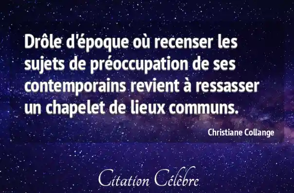 Drôle d'époque où recenser les sujets de préoccupation de ses contemporains revient à ressasser un chapelet de lieux communs.