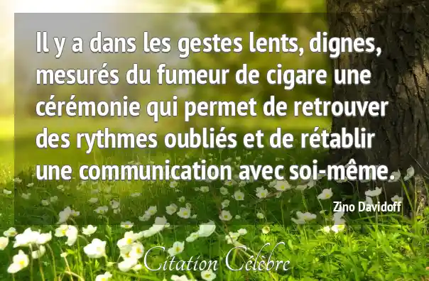 Il y a dans les gestes lents, dignes, mesurés du fumeur de cigare une cérémonie qui permet de retrouver des rythmes oubliés et de rétablir une communication avec soi-même.