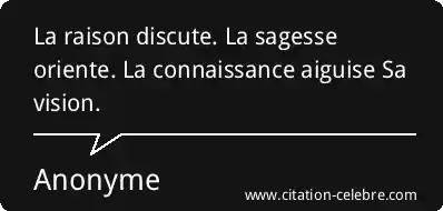 Citation Anonyme connaissance : La raison discute. La sagesse oriente. La connaissance aiguise Sa...