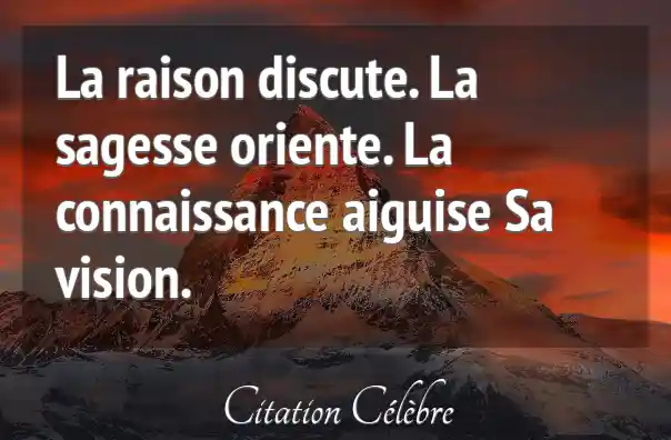 La raison discute. La sagesse oriente. La connaissance aiguise Sa vision.