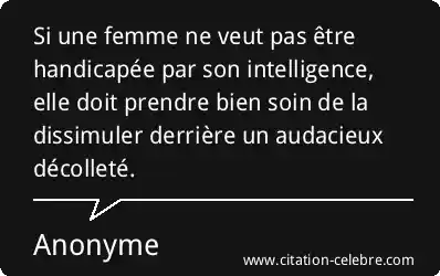 Si une femme ne veut pas être handicapée par son intelligence, elle doit prendre bien soin de la dissimuler derrière un audacieux décolleté.