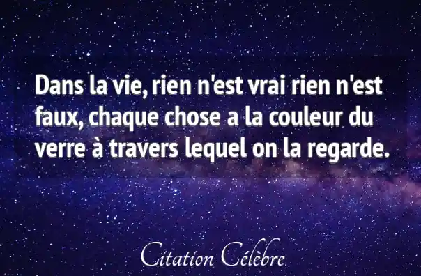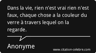 Dans la vie, rien n'est vrai rien n'est faux, chaque chose a la couleur du verre à travers lequel on la regarde.