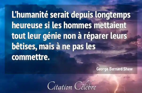 L'humanité serait depuis longtemps heureuse si les hommes mettaient tout leur génie non à réparer leurs bêtises, mais à ne pas les commettre.
