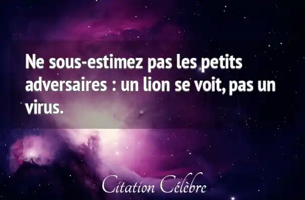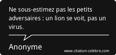 Ne sous-estimez pas les petits adversaires : un lion se voit, pas un virus.