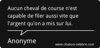 Aucun cheval de course n'est capable de filer aussi vite que l'argent qu'on a mis sur lui.