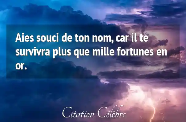 Aies souci de ton nom, car il te survivra plus que mille fortunes en or.