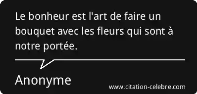 Le bonheur est l'art de faire un bouquet avec les fleurs qui sont à notre portée.