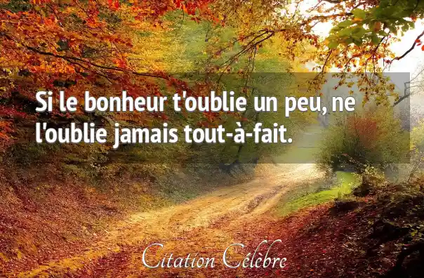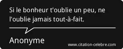 Si le bonheur t'oublie un peu, ne l'oublie jamais tout-à-fait.