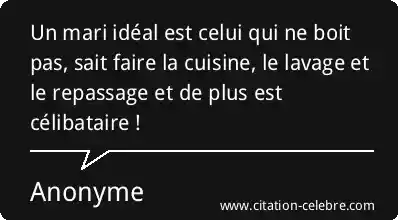 Un mari idéal est celui qui ne boit pas, sait faire la cuisine, le lavage et le repassage et de plus est célibataire !
