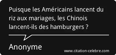 Puisque les Américains lancent du riz aux mariages, les Chinois lancent-ils des hamburgers ?