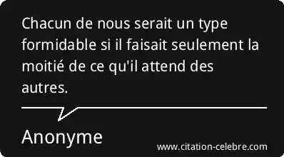 Chacun de nous serait un type formidable si il faisait seulement la moitié de ce qu'il attend des autres.