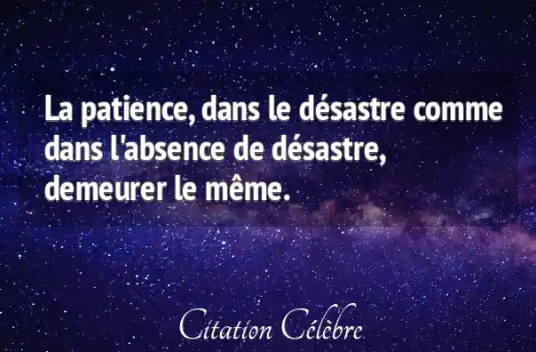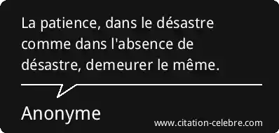 La patience, dans le désastre comme dans l'absence de désastre, demeurer le même.