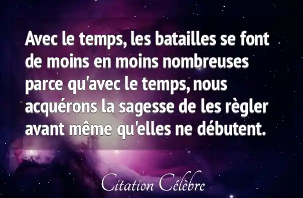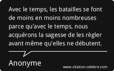 Avec le temps, les batailles se font de moins en moins nombreuses parce qu'avec le temps, nous acquérons la sagesse de les règler avant même qu'elles ne débutent.