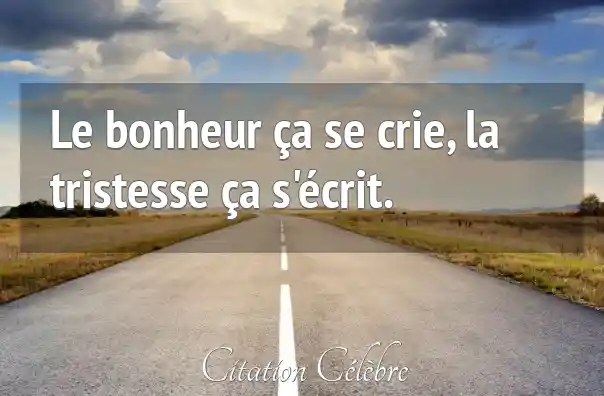 Le bonheur ça se crie, la tristesse ça s'écrit.