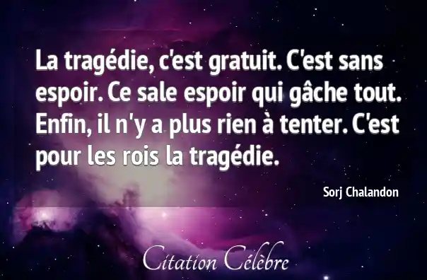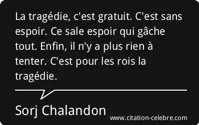 La tragédie, c'est gratuit. C'est sans espoir. Ce sale espoir qui gâche tout. Enfin, il n'y a plus rien à tenter. C'est pour les rois la tragédie.