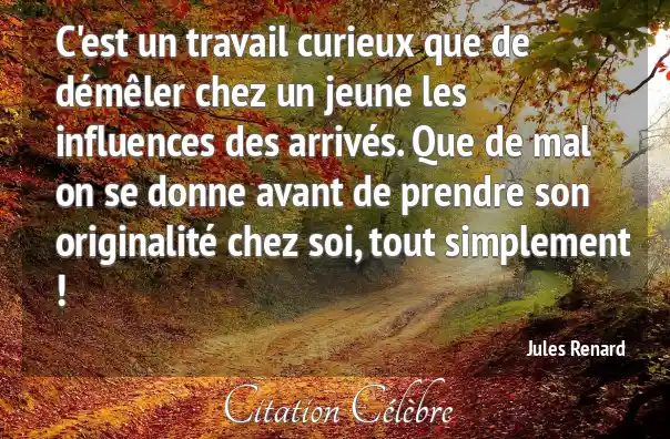 C'est un travail curieux que de démêler chez un jeune les influences des arrivés. Que de mal on se donne avant de prendre son originalité chez soi, tout simplement !