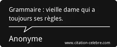 Grammaire : vieille dame qui a toujours ses règles.