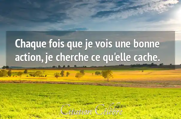 Chaque fois que je vois une bonne action, je cherche ce qu'elle cache.