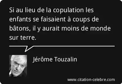 Si au lieu de la copulation les enfants se faisaient à coups de bâtons, il y aurait moins de monde sur terre.