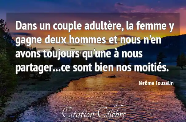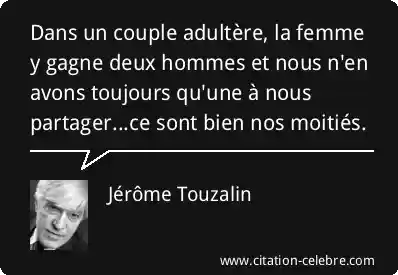 Dans un couple adultère, la femme y gagne deux hommes et nous n'en avons toujours qu'une à nous partager...ce sont bien nos moitiés.