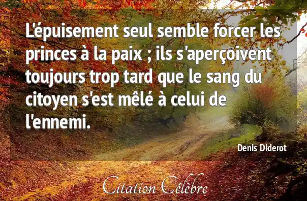 L'épuisement seul semble forcer les princes à la paix ; ils s'aperçoivent toujours trop tard que le sang du citoyen s'est mêlé à celui de l'ennemi.