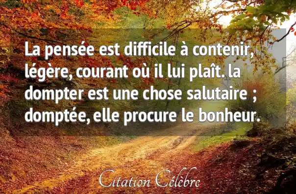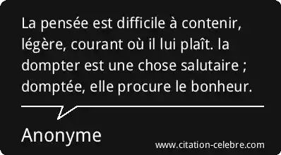 La pensée est difficile à contenir, légère, courant où il lui plaît. la dompter est une chose salutaire ; domptée, elle procure le bonheur.