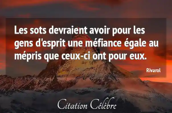 Les sots devraient avoir pour les gens d'esprit une méfiance égale au mépris que ceux-ci ont pour eux.