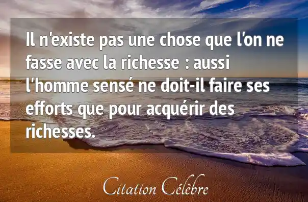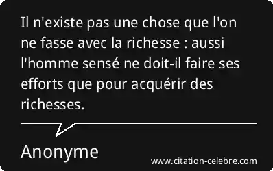 Il n'existe pas une chose que l'on ne fasse avec la richesse : aussi l'homme sensé ne doit-il faire ses efforts que pour acquérir des richesses.