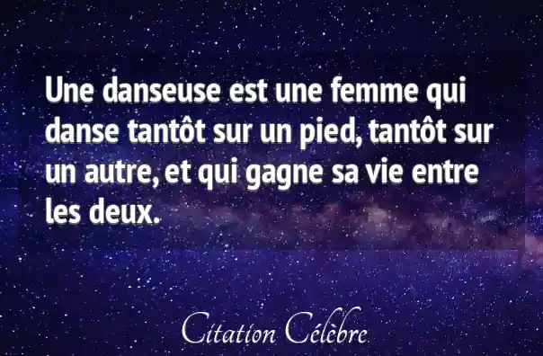 Une danseuse est une femme qui danse tantôt sur un pied, tantôt sur un autre, et qui gagne sa vie entre les deux.